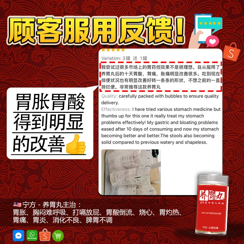 大马中药行纯中草药制作,主治:胃痛、胃灼热、胃溃疡、胃发炎、胃酸倒流、消化不良、胃胀风